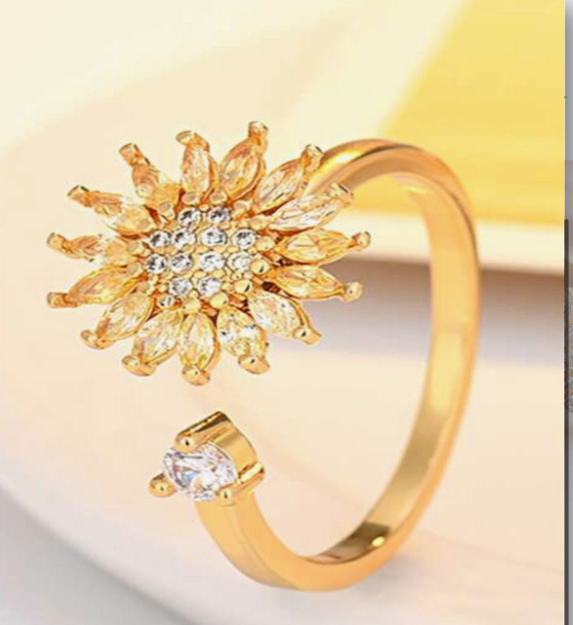 El girasol, con su naturaleza vivaz y su capacidad para seguir la luz del sol, es el símbolo perfecto del amor y la felicidad eterna. Nuestro anillo captura la esencia de esta flor única, con su brillante centro dorado y pétalos que irradian energía positiva y amor puro. 💞✨