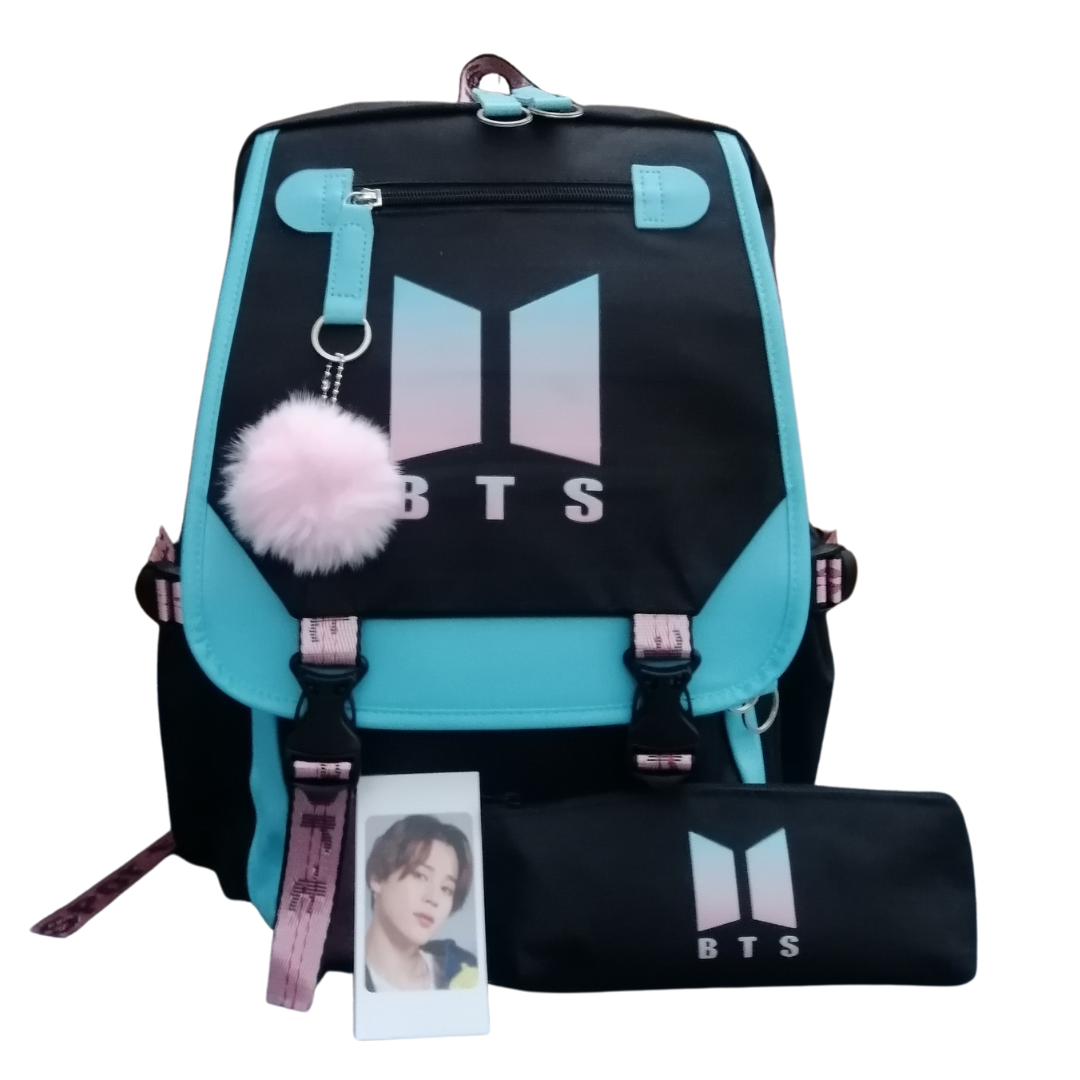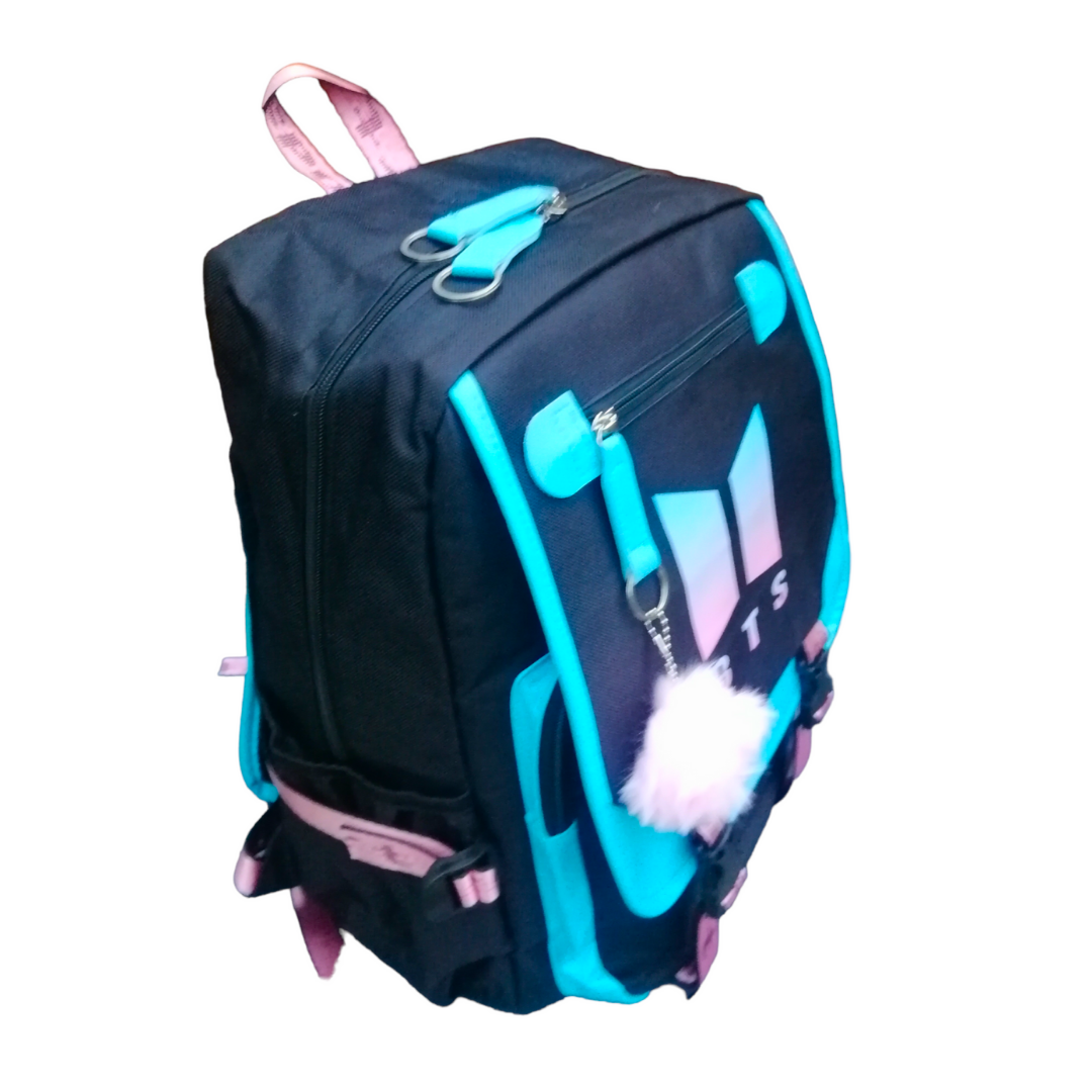 MOCHILA ESCOLAR BTS color celeste