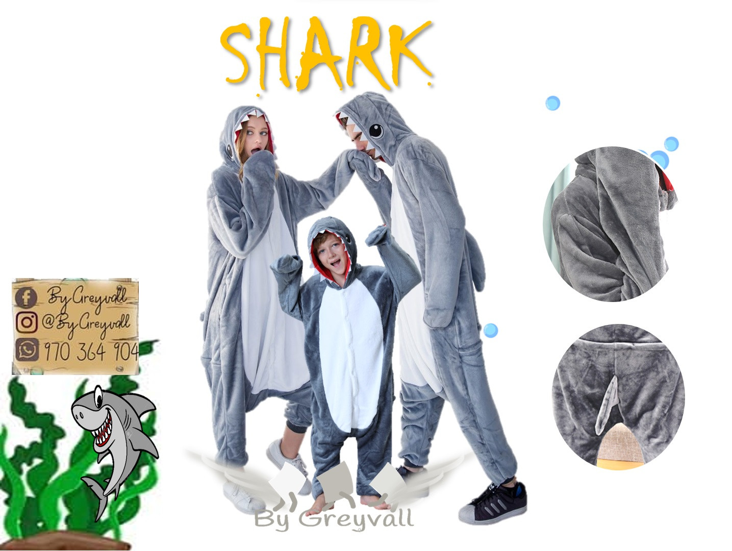 PIJAMAS KIGURUMIS ANIMALES - SHARK TIBURON GRIS